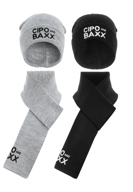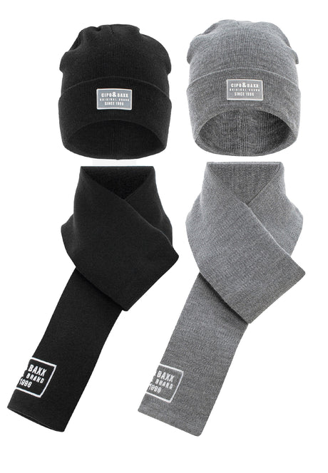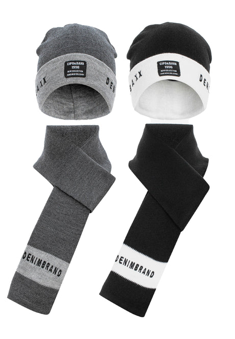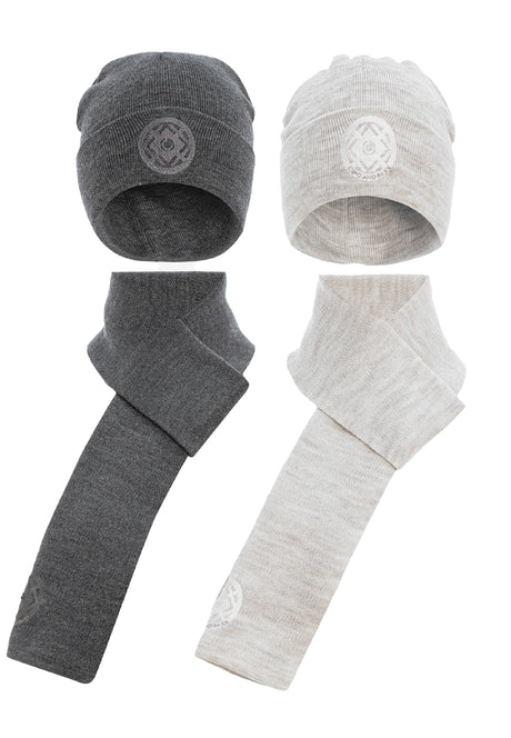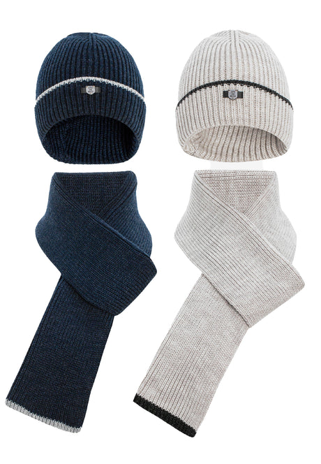 BA102 Boys' Winter Hat & Scarf - Knitting Set in Navy & Anthracite with Pom-pom and Pattern