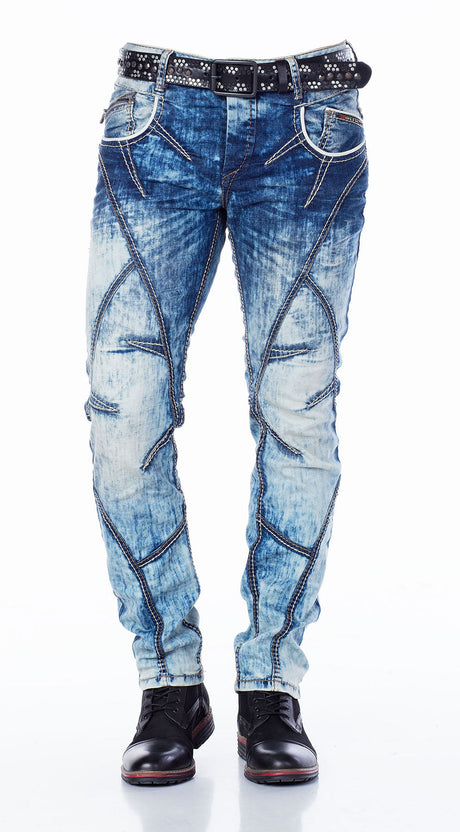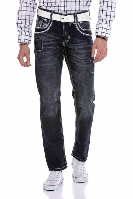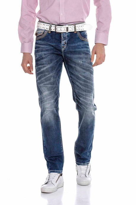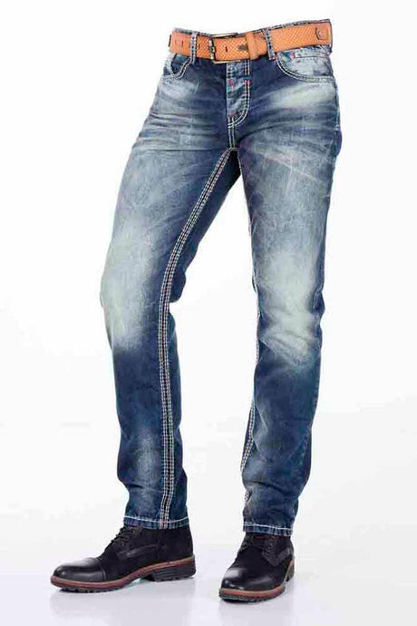 CD272 Men's comfortable jeans with embroidered seams in straight fit
