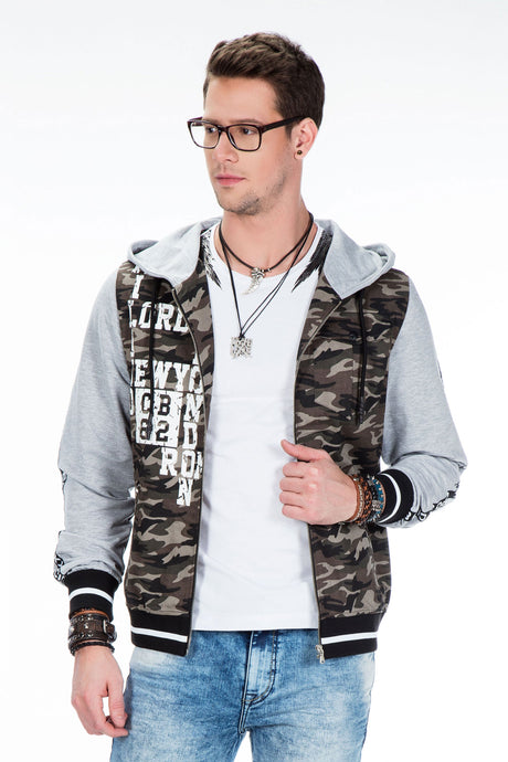 CJ215 Men's Transitional Jacket – Khaki Camouflage Jacket with Hood & Print Details