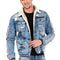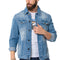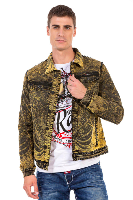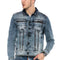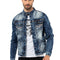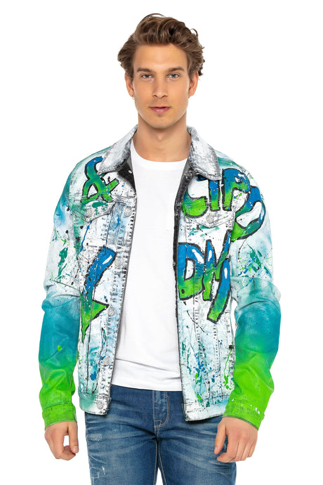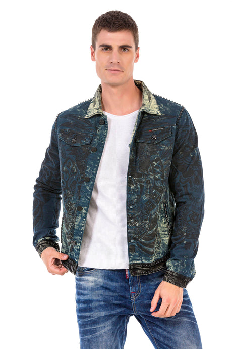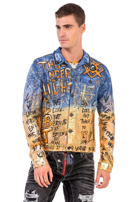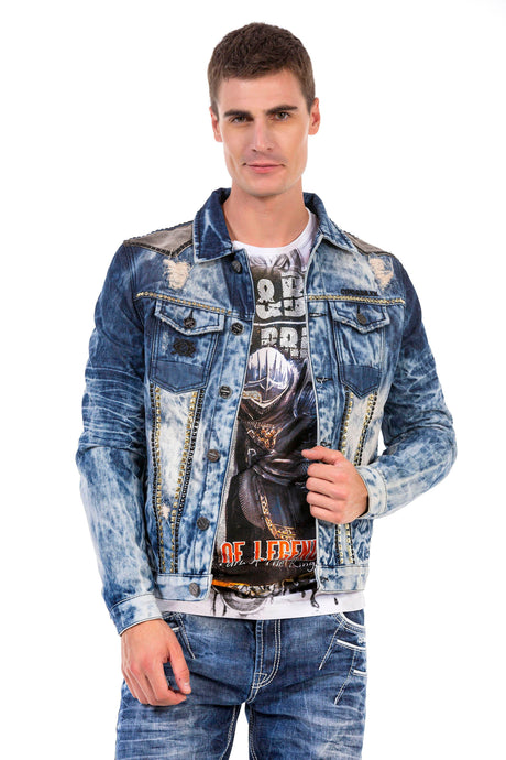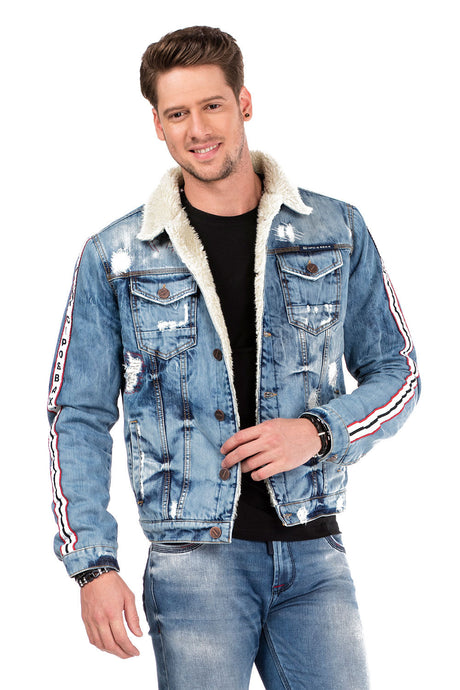 CJ310 Men's denim jacket with striped cuffs and college collar
