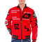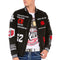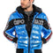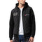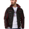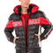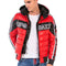 CJ269 Men's Winter Jacket – Black Quilted Jacket with Hood & Red and White Logo Print